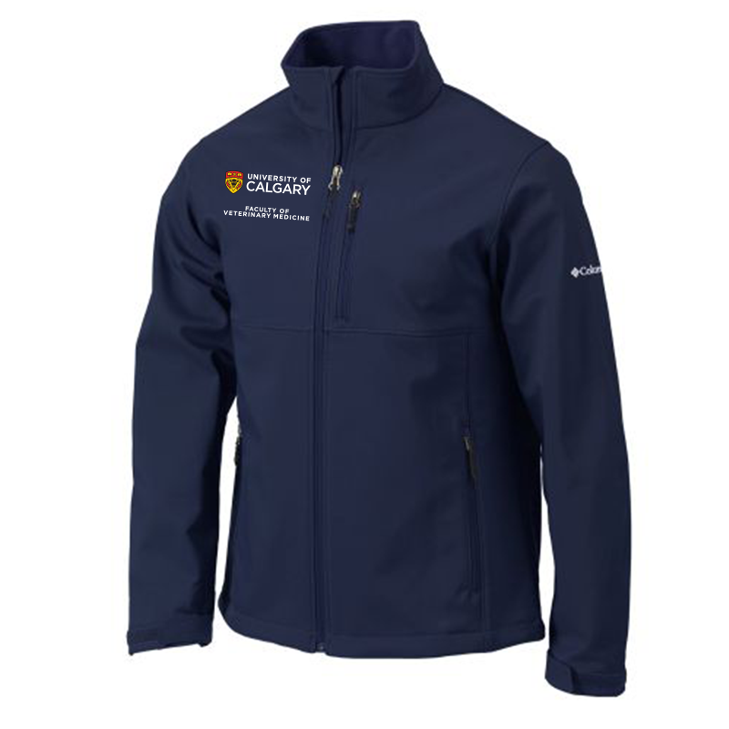 The Columbia Ascender Jacket is the perfect extra layer on or off campus. This Water/wind resistant bonded softshell will keep you protected from the elements during any activity. Drawcord adjustable hem with zippered chest and hand pockets that keep your valuables safely stored. Abrasion resistant chin guard with adjustable cuffs. Columbia logo embroidered on the left sleeve. Jackets are embroidered with University of Calgary Coat of Arms & Faculty of Veterinary Medicine on the chest.