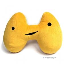 Supersized 11" x 8" x 4" thyroid is ready to take on the world. This amazing endocrine gland serves as the body's thermostat it regulates how much energy to burn from the food we eat. Whether you're a couch potato or a triathlete, the thyroid controls how energetic you feel. It's metabolism central, baby. Incredibly soft, super high quality plush comes with an educational mini book filled with disco-dancing thyroids, trivia and also actual information about this under-appreciated gland that works so hard for you every day. Great present for thyroid cancer survivors, hyperthyroid or hypothyroid patients or fun-loving endocrinologists. 100 percent polyester, designed in California, made in China.