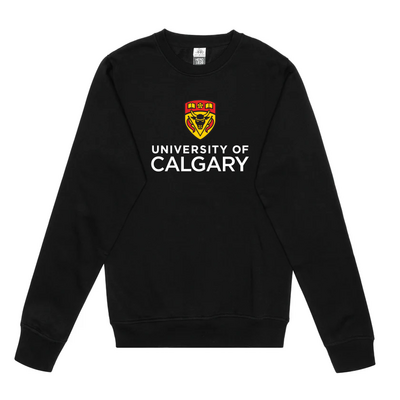 This cozy fleece crewneck sweater is made from a comfy 50/50 cotton-poly blend. Featuring a rib knit collar, cuffs and hem, plus a hanger loop inside the neck. Decorated with a 2 colour twill University of Calgary "Mom" Heritage logo.
